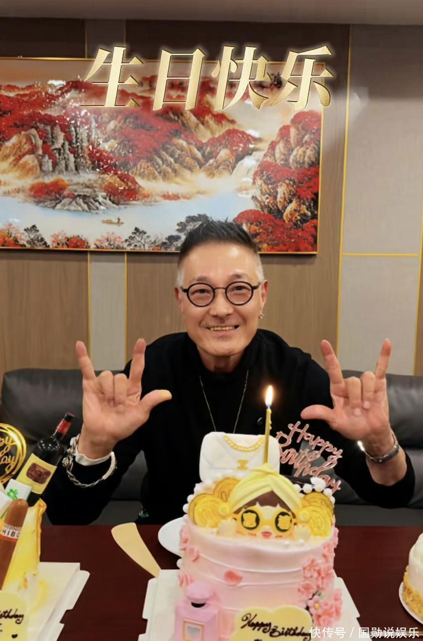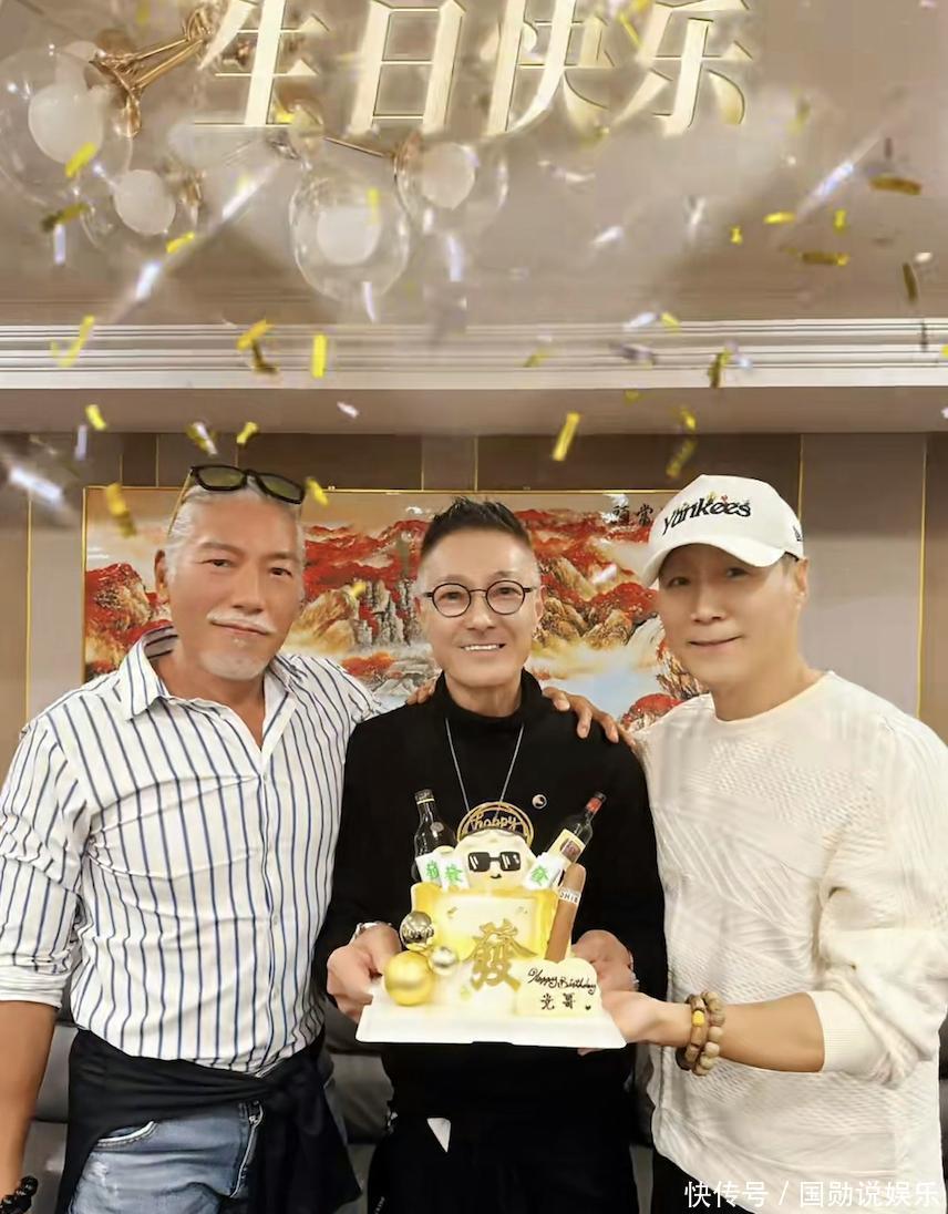 和张耀扬的张扬有型不同,64岁的林国斌就低调很多,走的是居家儒雅路线。当天他穿一件白色针织衫,戴一顶白色帽子,手上还戴着佛珠,目光柔和,慈眉善目,和以前荧幕上的形象反差超大,完全看不出当年的“恶人”影子。三人同框的画面,真的越看越有感触。现场准备了好几个定制蛋糕,其中一个最特别,上面印着显眼的“發”字,还有雪茄、红酒的装饰,妥妥的中年人专属,蛋糕前还放着一块牌子,写着“光哥生日快乐”。合照时,卢惠光站在中间,张耀扬和林国斌一左一右,手自然搭在他肩膀上,画面特别温馨。