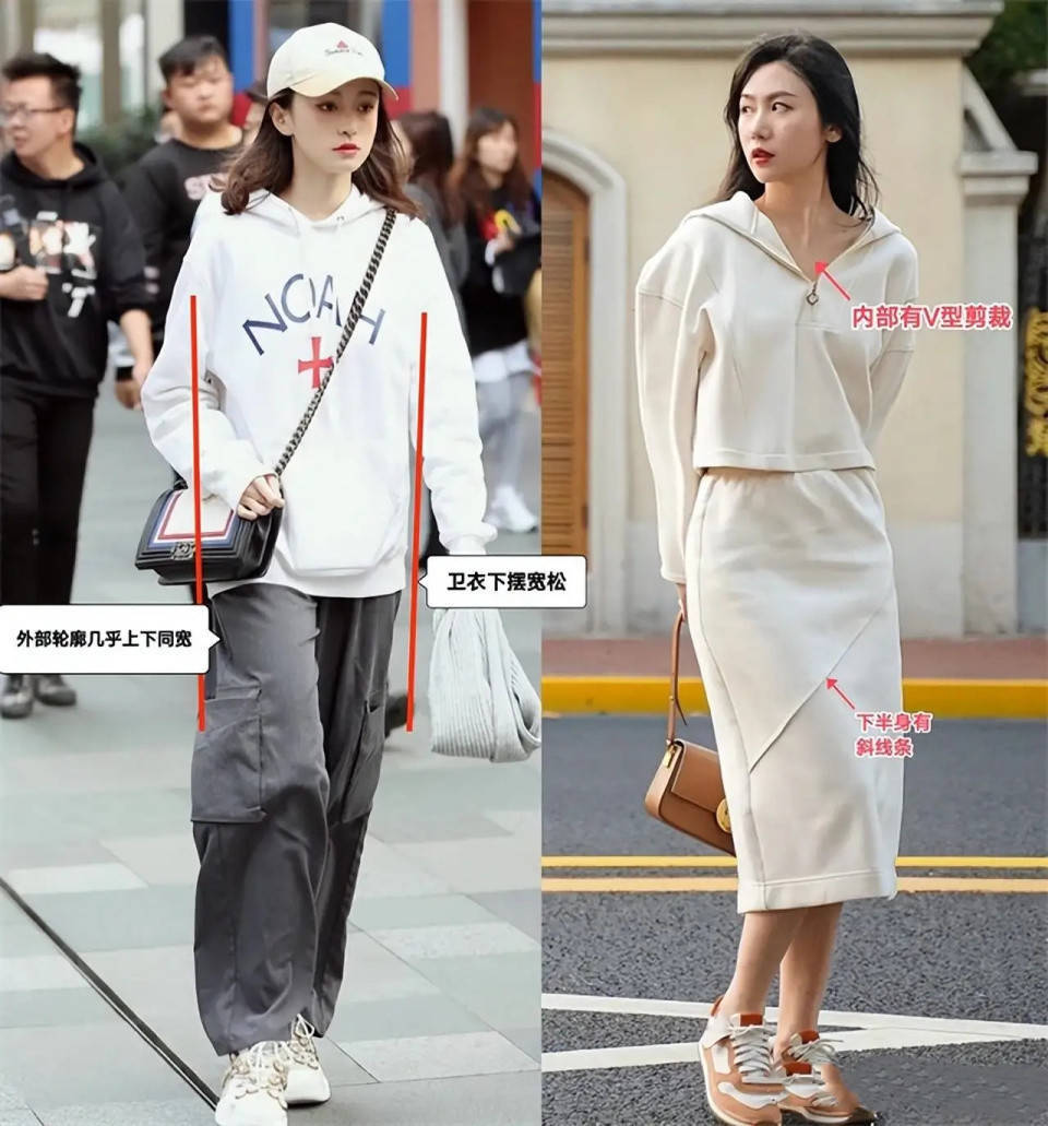 有的时候我们选择卫衣,其实要简约一点,穿在身上才好看。设计过于繁杂或者是廓形太大这种卫衣有的时候我们选择卫衣,其实要简约一点,穿在身上才好看。设计过于繁杂或者是廓形太大,甚至是卫衣太厚,叠穿在身上之后,就会显得整个人显胖。