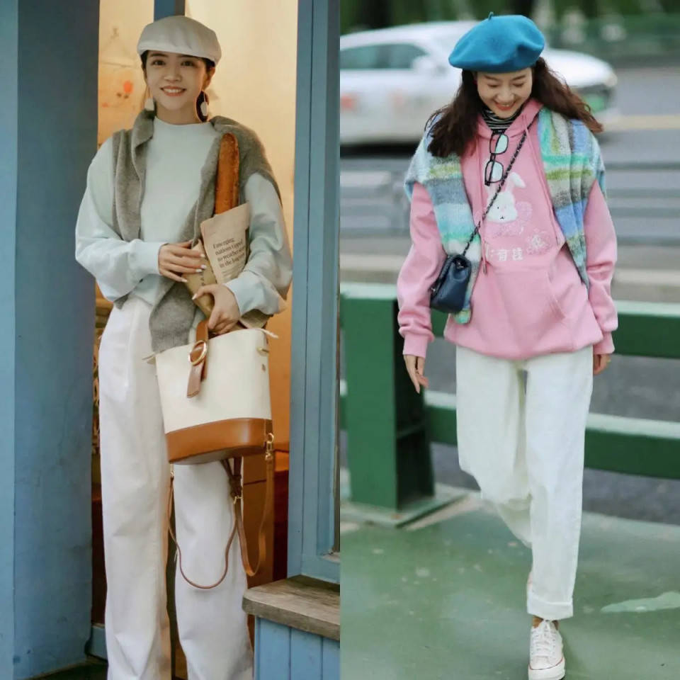 不过最为百搭的莫过于白色卫衣了,白色卫衣外套可以搭配上灰色的工装长裤,脚上穿的一双休闲鞋,头上戴了一顶棒球帽,这样的穿衣打扮很适合00后的美少女。